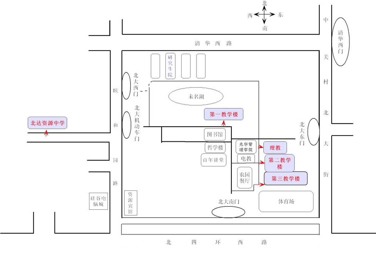 2、北京大學(xué)校本部及北達(dá)資源中學(xué)考場(chǎng)分布示意圖請(qǐng)參見“北京大學(xué)考場(chǎng)位置圖”(如圖)。
